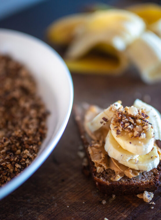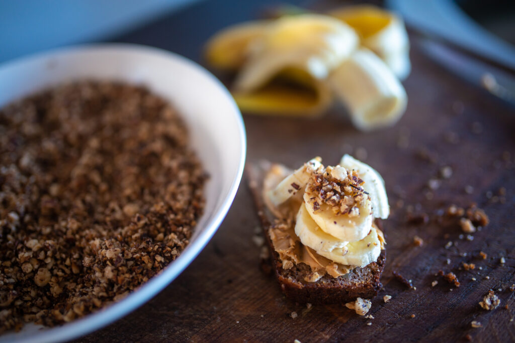 Sega retsepti 6 esimest koostisosa kokku. Lisa segades juurde munad. Püreesta banaanid ja sega koos meega taignasse. Lisa toasoe vôi. Sega segu kokku ja vala küpsetuspaberiga vooderdatud keeksivormi ja küpseta 175 kraadi juures ca 1 tund.